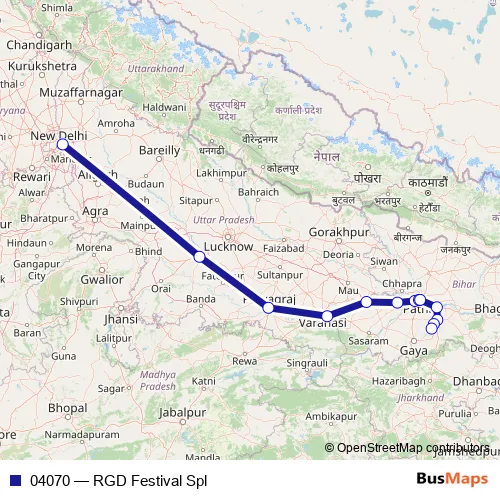 The first stop of the 04070 rail route is Anand Vihar Terminal and the last stop is Rajgir. 04070 (RGD Festival Spl) is operational during everyday.