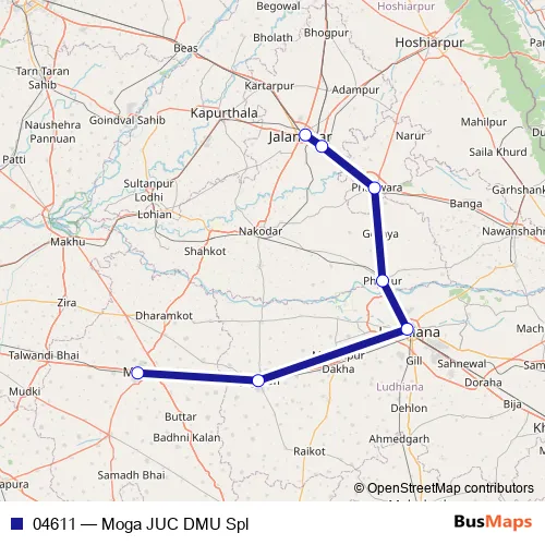 Click here to view the nearest 04611 - Moga JUC DMU Spl rail stop.