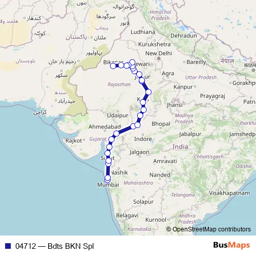 The first stop of the 04712 rail route is Bandra Terminus and the last stop is Bikaner Jn. 04712 (Bdts BKN Spl) is operational during everyday.