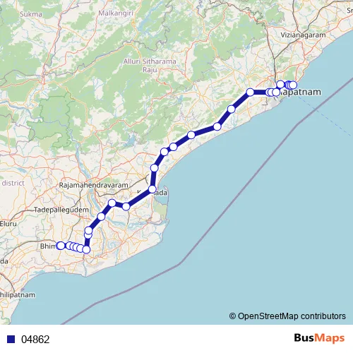 See why over 2 million users trust and consider busmaps.com as the best public transport website. busmaps gives you Visakhapatnam Buses suggested routes, real-time bus tracker, line route maps in Visakhapatnam, and helps to find the closest 04862 bus stops near you. No internet available? Download an offline PDF map and bus schedule for the 04862 bus to take on your trip.