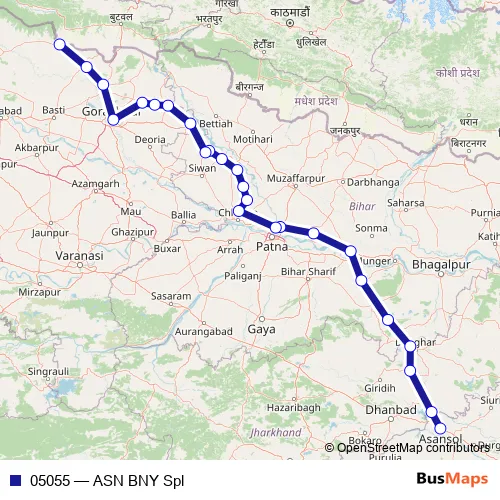 The first stop of the 05055 rail route is Asansol Jn. and the last stop is Barhni. 05055 (ASN BNY Spl) is operational during everyday.