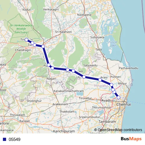 See why over 2 million users trust and consider busmaps.com as the best public transport website. busmaps gives you Chennai Buses suggested routes, real-time bus tracker, line route maps in Chennai, and helps to find the closest 05549 bus stops near you. No internet available? Download an offline PDF map and bus schedule for the 05549 bus to take on your trip.