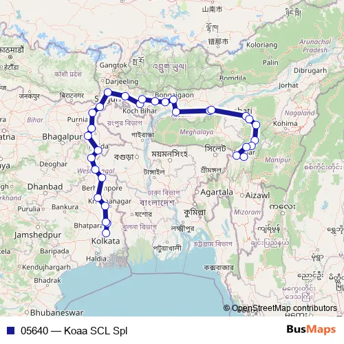 The first stop of the 05640 rail route is Kolkatta Terminal and the last stop is Silchar. 05640 (Koaa SCL Spl) is operational during everyday.