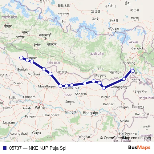 Click here to view the nearest 05737 - NKE NJP Puja Spl rail stop.