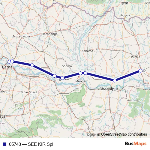 The first stop of the 05743 rail route is Sonpur Jn and the last stop is Katihar Jn. 05743 (SEE KIR Spl) is operational during everyday.