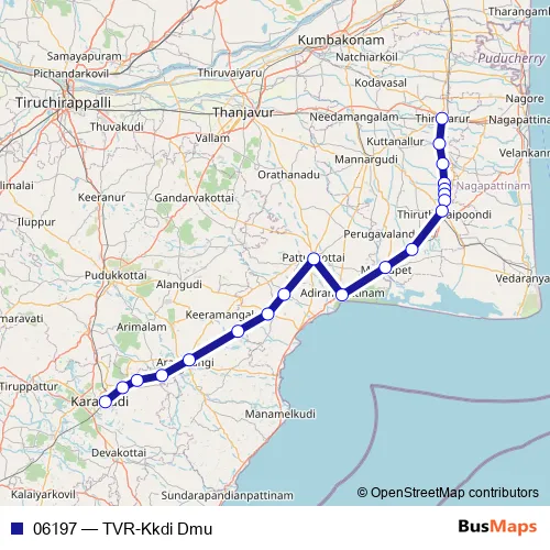See why over 2 million users trust and consider busmaps.com as the best public transport website. busmaps gives you Thiruthuraipoondi Rail Services suggested routes, real-time bus tracker, line route maps in Thiruthuraipoondi, and helps to find the closest 06197 rail stops near you. No internet available? Download an offline PDF map and bus schedule for the 06197 rail to take on your trip.