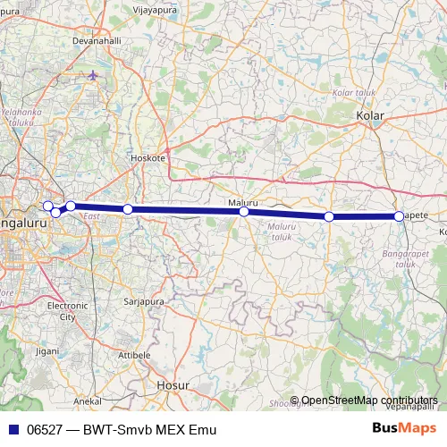 See why over 2 million users trust and consider busmaps.com as the best public transport website. busmaps gives you Bengaluru Rail Services suggested routes, real-time bus tracker, line route maps in Bengaluru, and helps to find the closest 06527 rail stops near you. No internet available? Download an offline PDF map and bus schedule for the 06527 rail to take on your trip.