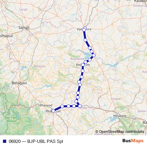 The first stop of the 06920 rail route is Vijayapura and the last stop is SSS Hubballi Jn. 06920 (BJP-UBL PAS Spl) is operational during everyday.