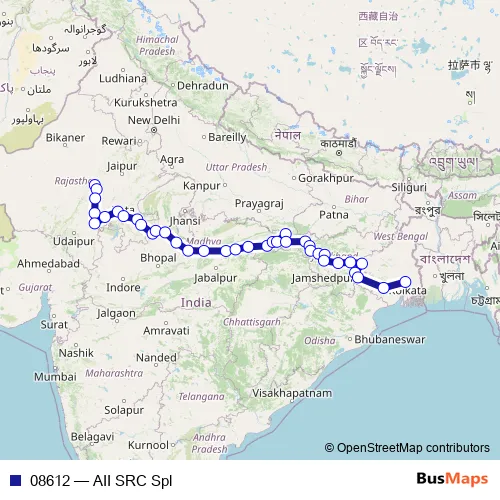 The first stop of the 08612 rail route is Ajmer Jn and the last stop is Santragachi Jn. 08612 (AII SRC Spl) is operational during everyday.