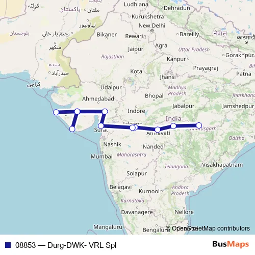 Rail 08853 - Durg-DWK- VRL Spl in Veraval: Stops & Timetable
