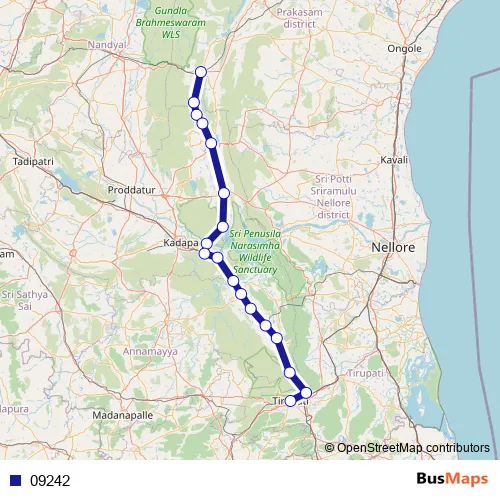 The first stop of the 09242 bus route is Giddalur and the last stop is