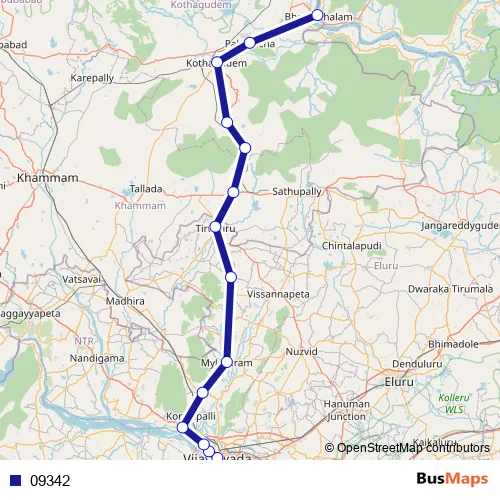 The first stop of the 09342 bus route is Vijayawada and the last stop is