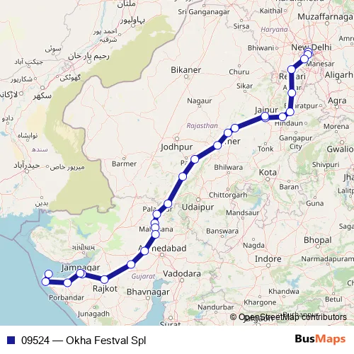 The first stop of the 09524 rail route is Shakurbasti and the last stop is Okha. 09524 (Okha Festval Spl) is operational during everyday.