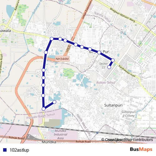 The first stop of the 102astlup bus route is Rani Khera Depot I and the last stop is Rohini Sec 22 Terminal. 102astlup is operational during everyday.