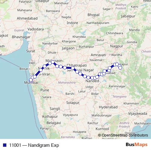The first stop of the 11001 rail route is C Shivaji MAH T and the last stop is Balharshah. 11001 (Nandigram Exp) is operational during everyday.