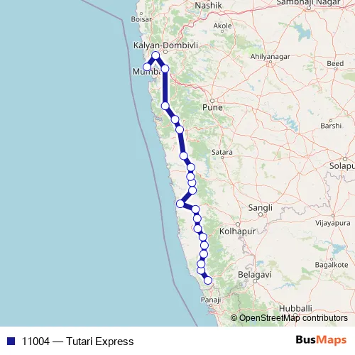 The first stop of the 11004 rail route is Sawantwadi Road and the last stop is Dadar. 11004 (Tutari Express) is operational during everyday.