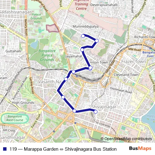 Bus 119 - Marappa Garden ⇔ Shivajinagara Bus Station: Full Schedule in Bengaluru