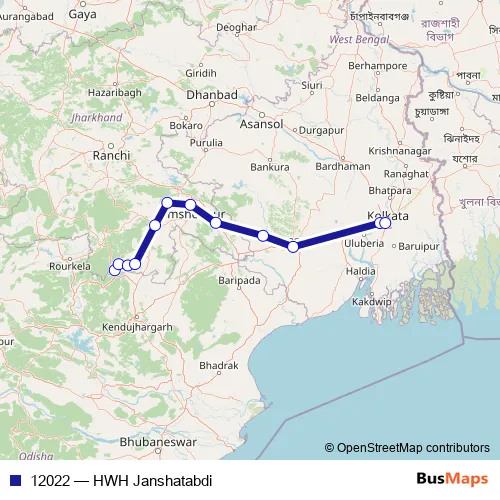 The first stop of the 12022 rail route is Barbil and the last stop is Howrah Jn. 12022 (HWH Janshatabdi) is operational during everyday.