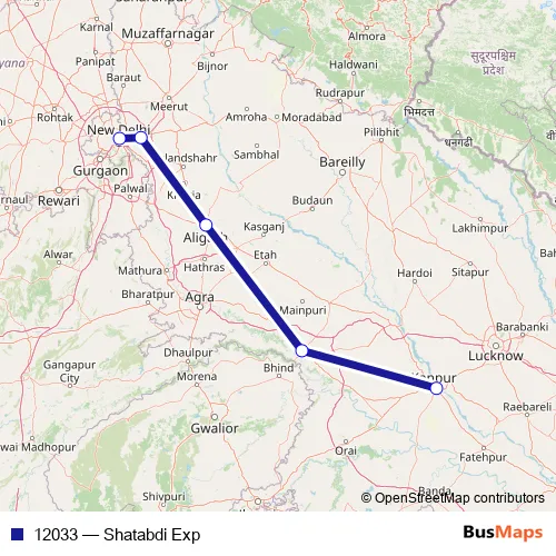 The first stop of the 12033 rail route is Kanpur Central and the last stop is NEW Delhi. 12033 (Shatabdi Exp) is operational during everyday.