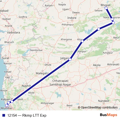 The first stop of the 12154 rail route is Rani Kamalapati and the last stop is Lokmanyatilak. 12154 (Rkmp LTT Exp) is operational during everyday.
