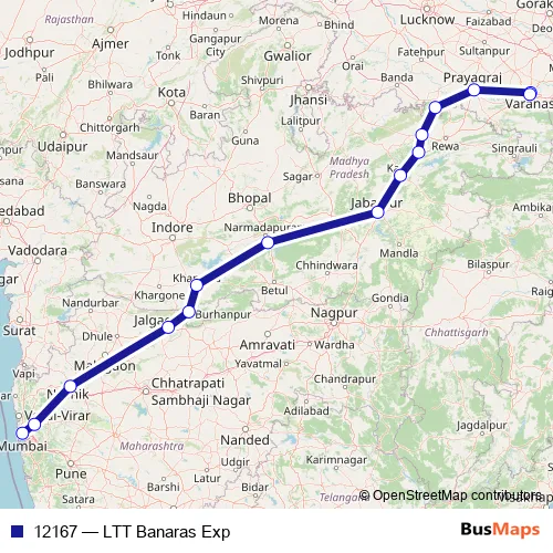 The first stop of the 12167 rail route is Lokmanyatilak and the last stop is Banaras. 12167 (LTT Banaras Exp) is operational during everyday.