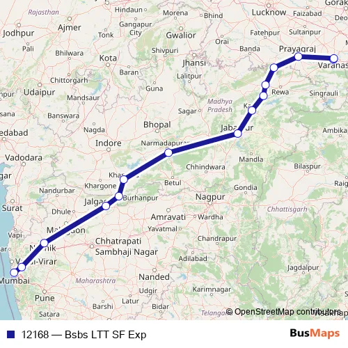 The first stop of the 12168 rail route is Banaras and the last stop is Lokmanyatilak. 12168 (Bsbs LTT SF Exp) is operational during everyday.