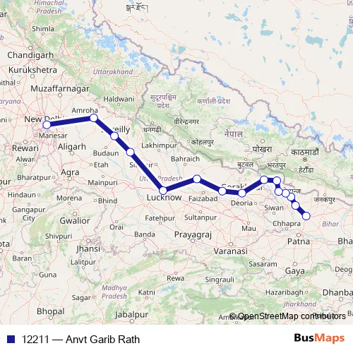 The first stop of the 12211 rail route is Muzaffarpur Jn and the last stop is Anand Vihar Terminal. 12211 (Anvt Garib Rath) is operational during everyday.