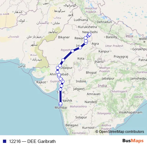 The first stop of the 12216 rail route is Bandra Terminus and the last stop is Delhi Sarai Rohilla. 12216 (DEE Garibrath) is operational during everyday.