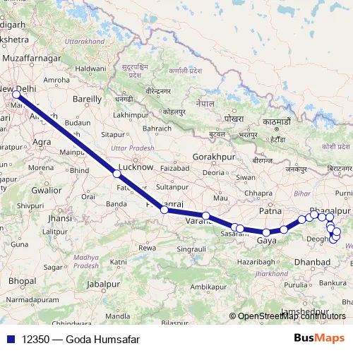 The first stop of the 12350 rail route is NEW Delhi and the last stop is Godda. 12350 (Goda Humsafar) is operational during everyday.