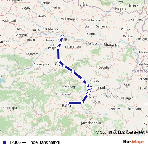 The first stop of the 12366 rail route is Ranchi and the last stop is Patna Jn. 12366 (Pnbe Janshatbdi) is operational during everyday.