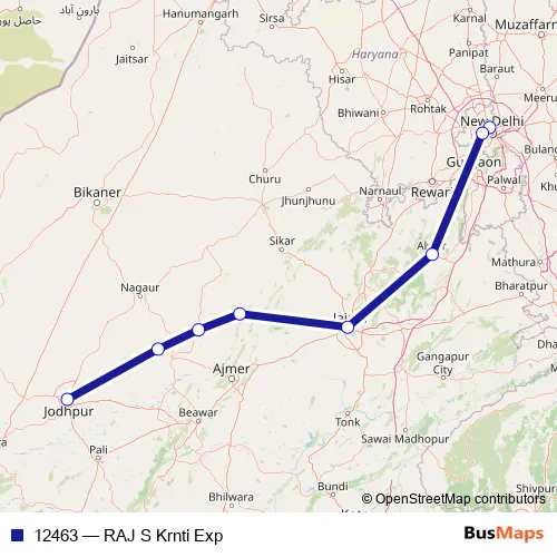 The first stop of the 12463 rail route is Delhi Sarai Rohilla and the last stop is Jodhpur Jn. 12463 (RAJ S Krnti Exp) is operational during everyday.