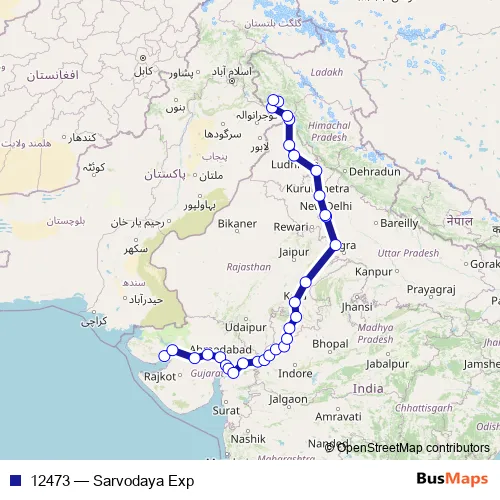 The first stop of the 12473 rail route is Gandhidham Bg and the last stop is Shri Mata Vaishno Devi Katra. 12473 (Sarvodaya Exp) is operational during everyday.