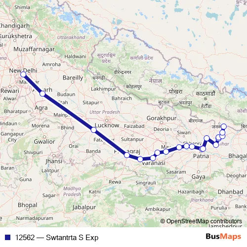 The first stop of the 12562 rail route is NEW Delhi and the last stop is Jaynagar. 12562 (Swtantrta S Exp) is operational during everyday.