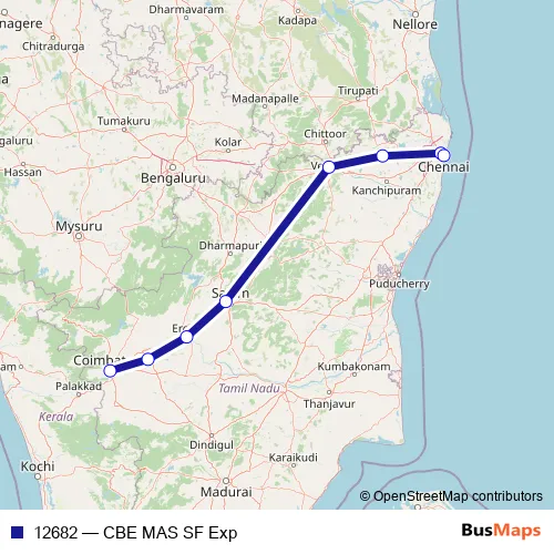 See why over 2 million users trust and consider busmaps.com as the best public transport website. busmaps gives you Chennai Rail Services suggested routes, real-time bus tracker, line route maps in Chennai, and helps to find the closest 12682 rail stops near you. No internet available? Download an offline PDF map and bus schedule for the 12682 rail to take on your trip.