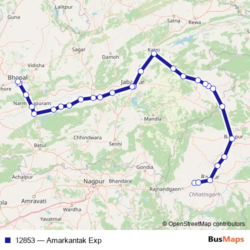 Rail 12853 - Amarkantak Exp: Full Schedule in Bhopal