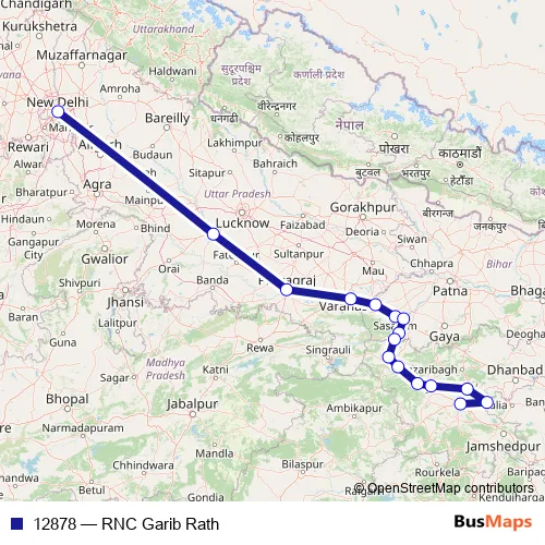 The first stop of the 12878 rail route is NEW Delhi and the last stop is Ranchi. 12878 (RNC Garib Rath) is operational during everyday.