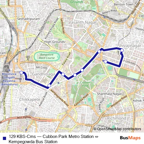 Bus 129 KBS-Cms - Cubbon Park Metro Station ⇔ Kempegowda Bus Station in Bengaluru: Stops & Timetable