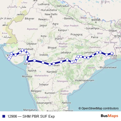 The first stop of the 12906 rail route is Shalimar and the last stop is Porbandar. 12906 (SHM PBR SUF Exp) is operational during everyday.