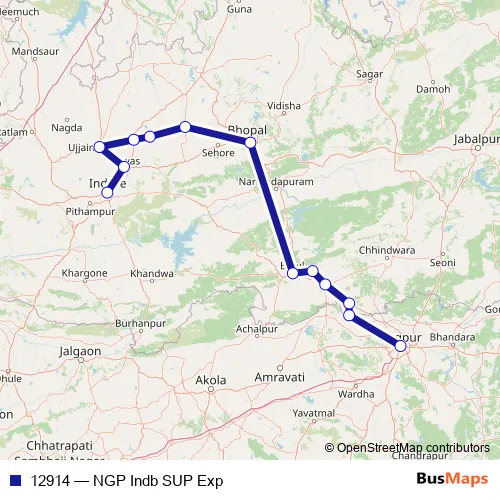 The first stop of the 12914 rail route is Nagpur Jn. and the last stop is Indore Jn. 12914 (NGP Indb SUP Exp) is operational during everyday.