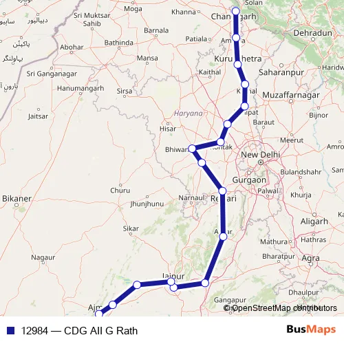 The first stop of the 12984 rail route is Chandigarh and the last stop is Ajmer Jn. 12984 (CDG AII G Rath) is operational during everyday.