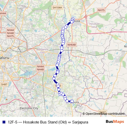 Click here to view the nearest 12F-5 - Hosakote Bus Stand (Old) ⇔ Sarjapura bus stop.