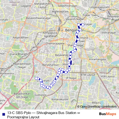 See why over 2 million users trust and consider busmaps.com as the best public transport website. busmaps gives you Bengaluru Buses suggested routes, real-time bus tracker, line route maps in Bengaluru, and helps to find the closest 13-C SBS-Pplo bus stops near you. No internet available? Download an offline PDF map and bus schedule for the 13-C SBS-Pplo bus to take on your trip.