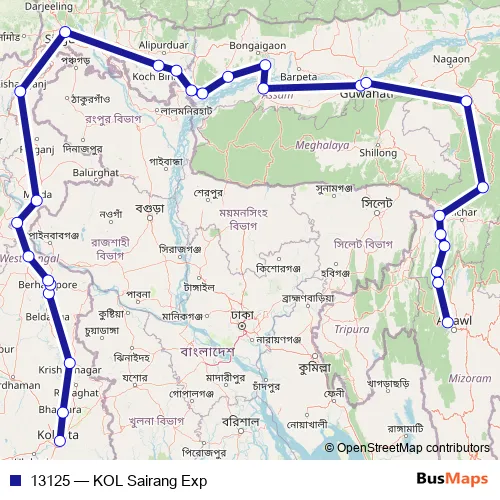 Click here to view the nearest 13125 - KOL Sairang Exp rail stop.