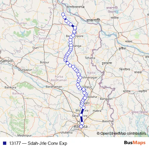 The first stop of the 13177 rail route is Sealdah and the last stop is Jangipur Road. 13177 (Sdah-Jrle Conv Exp) is operational during everyday.