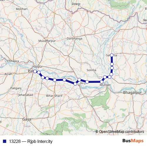 The first stop of the 13228 rail route is Rajendra Nagar and the last stop is Saharsa Jn. 13228 (Rjpb Intercity) is operational during everyday.