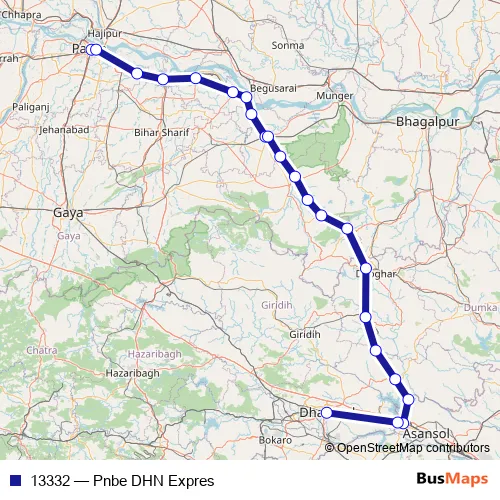 The first stop of the 13332 rail route is Patna Jn and the last stop is Dhanbad Jn. 13332 (Pnbe DHN Expres) is operational during everyday.