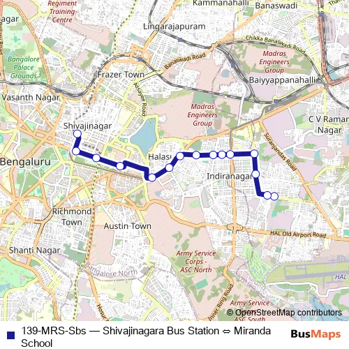 139-MRS-Sbs Bus - Shivajinagara Bus Station ⇔ Miranda School