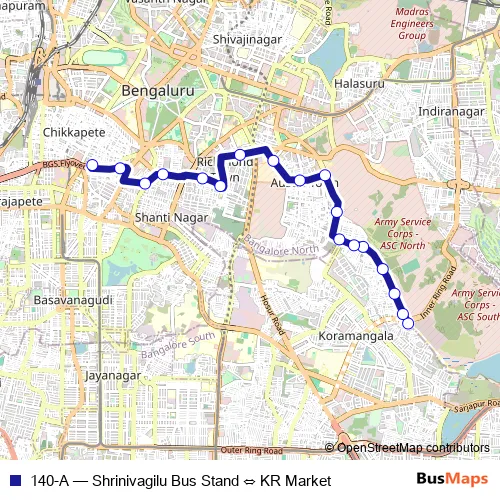 See why over 2 million users trust and consider busmaps.com as the best public transport website. busmaps gives you Bengaluru Buses suggested routes, real-time bus tracker, line route maps in Bengaluru, and helps to find the closest 140-A bus stops near you. No internet available? Download an offline PDF map and bus schedule for the 140-A bus to take on your trip.