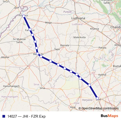 The first stop of the 14027 rail route is Jind Jn and the last stop is Firozpur Cant. 14027 (JHI - FZR Exp) is operational during everyday.