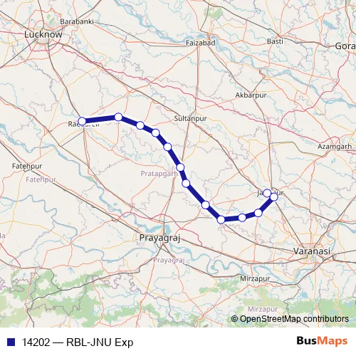The first stop of the 14202 rail route is RAE Bareli Jn and the last stop is Jaunpur Jn. 14202 (RBL-JNU Exp) is operational during everyday.